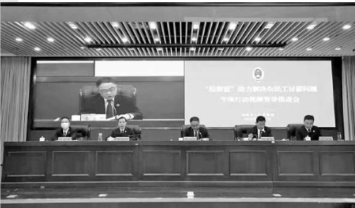 2022年1月17日,安徽省检察院召开“检察蓝”助力解决农民工讨薪问题专项行动视频督导推进会。 解为渝摄