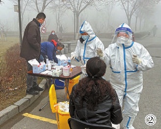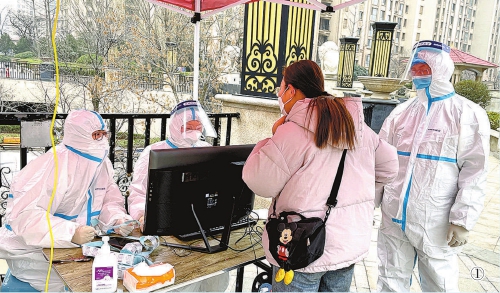 图①近日,山东省青岛市李沧区检察院党员先锋队干警帮助登记核酸检测信息。 本报通讯员孙晓冰摄