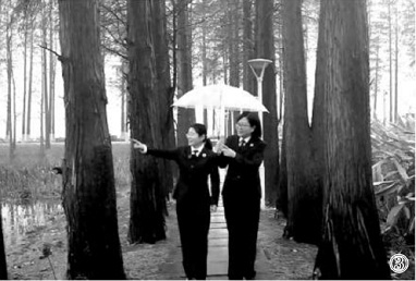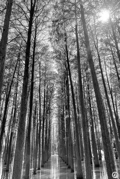 图④:位于武汉市东湖生态旅游风景区内的池杉林