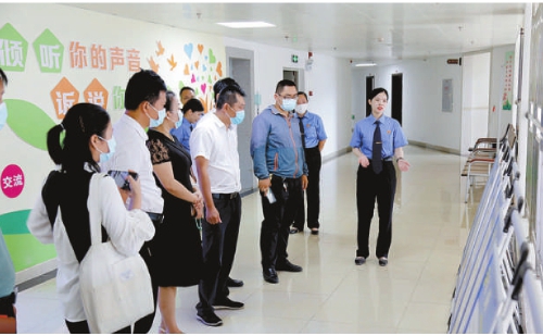 代表们参观琼山区检察院联合海口市公安局琼山分局建设的未成年人“一站式”办案中心。