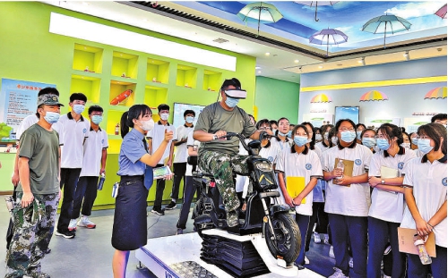 近日,一场法治味儿十足的“军训”在河南省修武县检察院负责建设的县青少年法治教育实践基地举行,该院检察官分批次为900余名高一新生进行法治宣讲。图为学生们通过VR眼镜体验醉驾场景,感受酒驾的危险。 本报记者张海燕 通讯员杨梦瑶摄