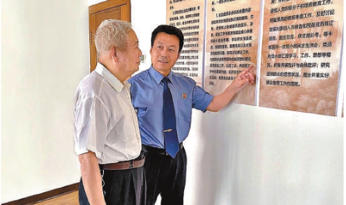 赵延峰(右)向老干部介绍检察工作新情况新发展。