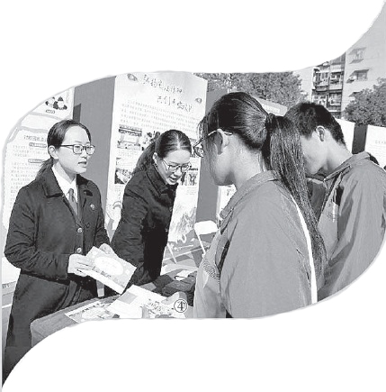图④:湖北省武汉市江汉区检察院干警何艳(左一)走上街头宣讲宪法。
