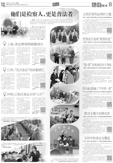 编者按 对检察人而言,宪法精神无处不在、无时不在,检察人,更是普法者。在办案中普法、在生活中普法,走进企业普法、来到社区普法;学校、商场、厂房、企业、田间、牧场、法庭……有人民群众的地方,就可以看到普法的检察人。在国家宪法日即将到来之际,编辑部为您介绍检察系统的普法团队和普法人。此时,他们或许正在百姓身边普法。