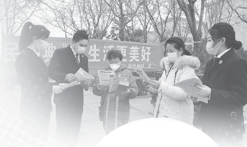 图②:2023年2月8日,陕西省宝鸡市陈仓区检察院检察官在社区向市民宣传民法典知识。 本报记者倪建军 通讯员杜永清 肖菲菲摄