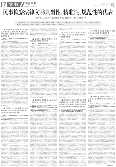 民事检察法律文书典型性、精准性、规范性的代表