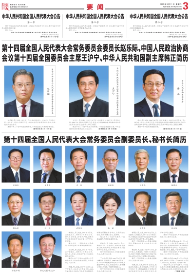 第十四届全国人民代表大会常务委员会委员长赵乐际、中国人民政治协商会议第十四届全国委员会主席王沪宁、中华人民共和国副主席韩正简历