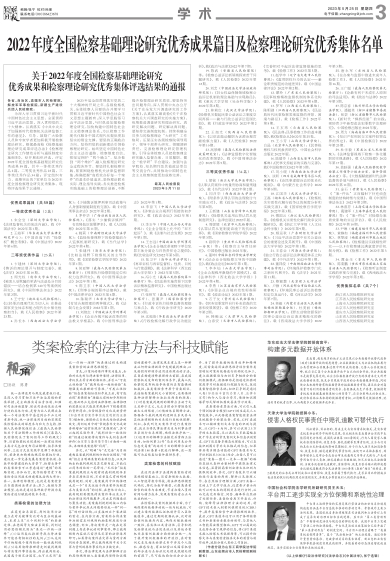 2022年度全国检察基础理论研究优秀成果篇目及检察理论研究优秀集体名单