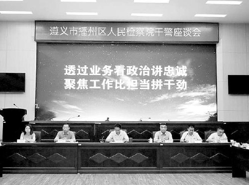 遵义市播州区检察院召开“透过业务看政治讲忠诚 聚焦工作比担当拼干劲”主题座谈会。