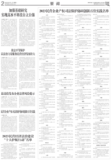 2023民营经济法治建设“十大护航行动”名单