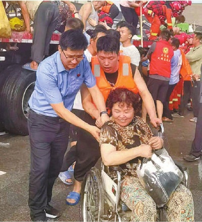 8月2日,河北省涿州市检察院组织人员协助转移受灾群众。 本报通讯员李宇航摄