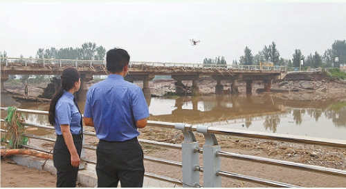 8月2日,河北省涞水县检察院干警利用无人机实地巡查河道行洪情况、人员被困情况,查看是否存在垃圾等堵塞河道有碍行洪安全的情形,协助相关部门排查安全隐患。 本报通讯员王捷摄