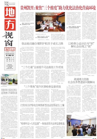 贵州省凯里市检察院认真贯彻落实国务院印发《关于支持贵州在新时代西部大开发上闯新路的意见》精神,紧紧围绕贵州省检察机关充分发挥检察职能服务保障“四区一高地”建设专项工作部署,以融入式履职、协作式履职、延伸式履职,突出服务经济社会高质量发展效能,持续高位推动优化法治化营商环境工作取得实效。