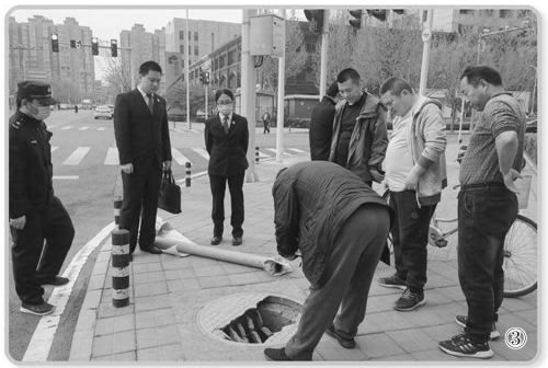 图③:平谷区检察院践行“吹哨报到”,督促责任单位对破损窨井盖进行修复更换。