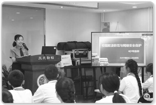 图⑤:朝阳区检察院检察官聚焦校园内外综合治理,到学校开展法治宣讲。