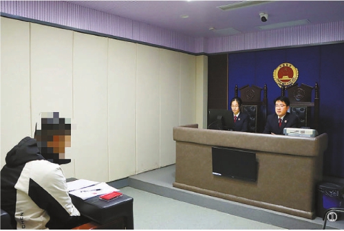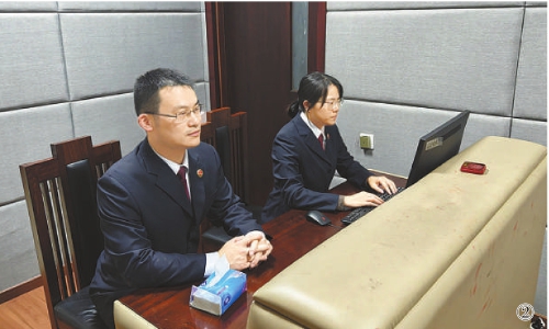 图①:江苏省东海县检察院检察官讯问租车诈骗犯罪嫌疑人。