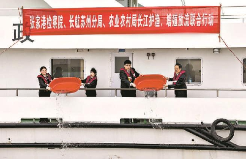 这是张家港市检察院今年会同长江航运公安局苏州分局、张家港市农业农村局共同开展的首次增殖放流活动。这些鱼苗是用该院去年办理的一起非法捕捞长江刀鱼案犯罪嫌疑人缴纳的生态赔偿金购买的。