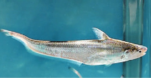 长江刀鱼又称刀鲚,隶属于鲱形目,鳀科,鲚属,其身体扁而狭长似刀,故得名刀鱼,学名长颌鲚。长颌鲚体长而侧扁,前体稍高,向后渐尖细,头较大,吻短圆,口大而斜,下位,上颌骨下缘有锯状细齿。