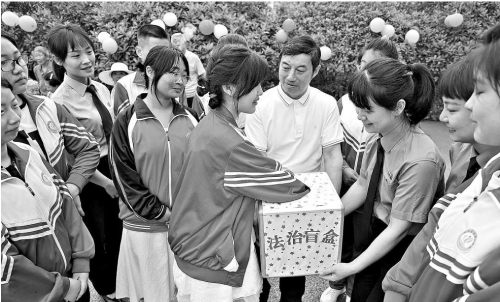 近日,四川省营山县检察院与该县茶盘小学联合举办“检教同行,共护成长”主题检察开放日活动,邀请全国人大代表、四川通旺农牧集团有限公司机修班班长李树林及社会各界代表等陪同学们一起欢度六一国际儿童节。图为李树林代表与孩子们在玩“法治盲盒”游戏,他告诉孩子们要明理守法,将法治精神入于心、践于行。 本报通讯员王思卉摄