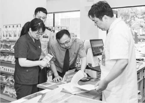 图⑤:近日,江苏省高邮市检察院联合法院、公安局、市场监督管理局等职能单位对辖区内诊所、药店开展随机抽查,并结合办理的麻精药品失管涉毒案件,向工作人员及顾客普及相关法律知识,提升群众对麻精药品滥用的警惕意识。 本报通讯员金林摄