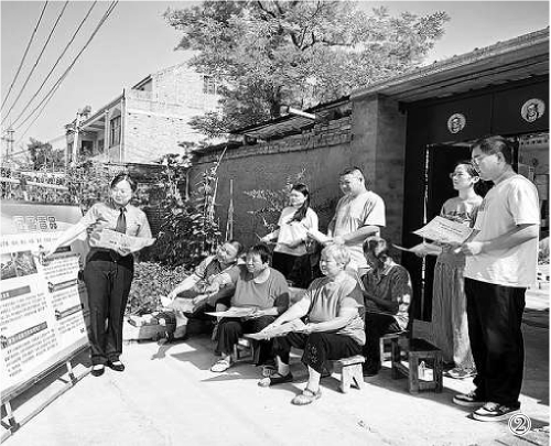 图②:河南省浚县检察院干警走进曾发生种植毒品原植物案的村庄,讲解禁毒知识、展示毒品实物模型,提醒村民注意分辨、远离毒品,积极举报涉毒线索。 本报通讯员宋凯云摄