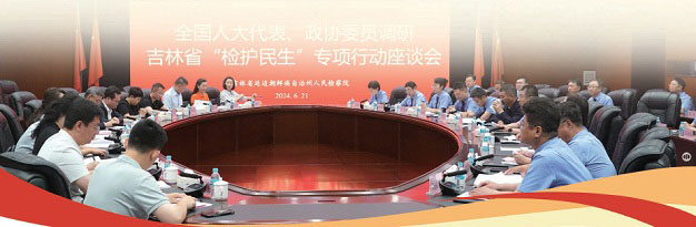 图①:全国人大代表、政协委员调研吉林省“检护民生”专项行动座谈会在延边朝鲜族自治州检察院召开。 本报通讯员梁库摄