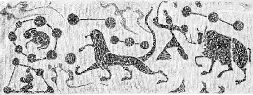 这是一张东汉“牛郎织女星座”画像石的拓片。西周时期,古人将两颗行星命名为“牵牛”“织女”。拓片上,右刻一男子扬鞭牵牛,上有三星相连暗指牵牛星;左侧七星环内刻一玉兔,另有跪坐女子四星围身,当为织女星。早期的牛郎织女,就这样拥有了“人”的样貌。