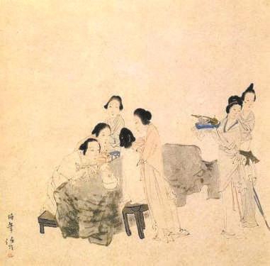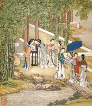 清·陈枚《月曼清游图册·桐荫乞巧》