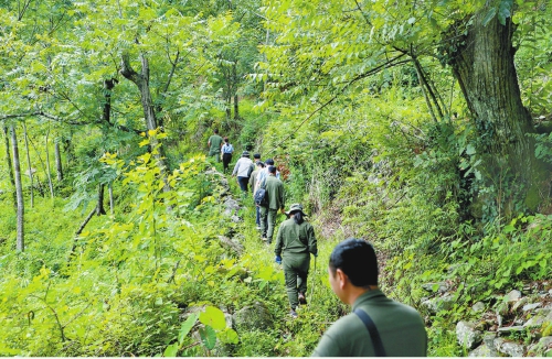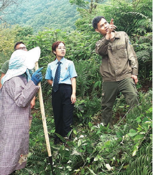 近日,广西壮族自治区田林县检察院检察干警与广西岑王老山国家级自然保护区工作人员来到保护区内的生态修复区,现场查看一起生态环境刑事附带民事公益诉讼案中被告人尹某等人履行修复责任的情况。同时,针对办案中发现的群众生态保护意识薄弱等问题,检察干警与保护区工作人员一同向林间劳作的群众及周边村民现场普法。 本报通讯员黄平安 梁佩丽摄