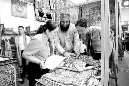 北京市检察机关派驻服贸会知识产权保护办公室的检察官与外国参展商沟通交流,向其了解参展情况及知识产权保护需求,并介绍我国知识产权司法保护制度。 成于庆摄