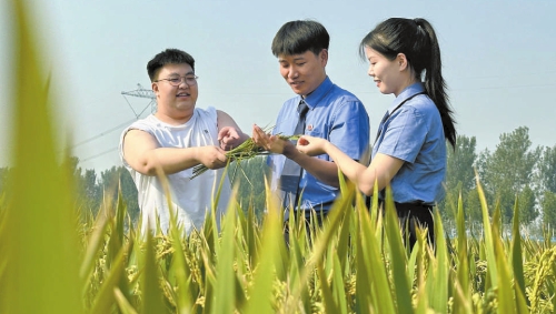 2024年9月25日,河南省原阳县检察院公益诉讼部门检察官针对曾被污水损毁的农田开展“回头看”活动时,正在劳作的农民向检察官们展示了水稻的喜人长势。今年4月,原阳县检察院履行职责时发现,某乡镇辖区内有畜禽养殖场污水外排造成环境污染,对农业生产造成影响。该院通过制发检察建议督促相关职能部门依法履职,有效解决环境污染问题,维护社会公共利益,促进农业绿色发展。 本报记者刘立新 通讯员夏兴宇摄