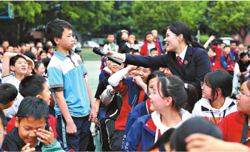 今年4月10日,泸州“纳爱”未成年人检察工作团队联合纳溪区妇联、团区委、区关工委等部门志愿者来到纳溪中学附属棉花坡学校,为师生们带来一场生动的预防校园欺凌主题活动。