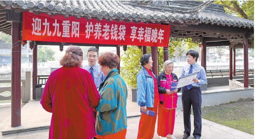 10月10日,重阳节前夕,江苏省兴化市检察院法治宣讲团工作人员来到兴化拱极台公园,走到晨练的老年人身边,细心讲解反诈防骗法律知识,送上贴心的节日祝福。