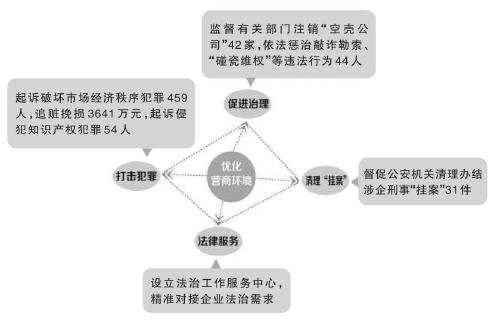 2024年,宁夏检察机关起诉破坏市场经济秩序犯罪459人,追赃挽损3641万元。依法平等保护各类经营主体,出台安商助企“十项措施”,建立联动护企“十项机制”,牵头在宁东能源基地设立法治工作服务中心,辐射带动市县(区)检察院与工业园区、经济开发区建立检察服务联络机制,督促有关部门注销“空壳公司”42家、清理涉企“挂案”31件、执行涉企财产性判项2864万元。助力因地制宜发展新质生产力,起诉侵犯知识产权犯罪54人。加大宁夏葡萄酒、中宁枸杞等特色农牧业司法保护力度,依法守护隆德“魏氏砖雕”、海原“花儿”等非遗传承,为特色优势产业和文化旅游创新发展保驾护航。