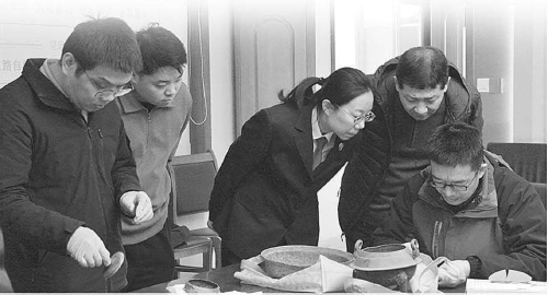 1月15日,淄博市临淄区检察院检察官邀请文物专家对被盗掘文物等级进行认定。