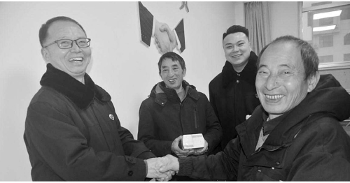 1月23日至24日,四川省乐山市五通桥区检察院通过“支持起诉+诉前和解+司法确认+执行和解”的工作模式,与五通桥区法院、区人社局积极配合,使50名农民工在农历蛇年春节前夕拿到了被拖欠的合计61万余元工资。图为拿回欠薪的农民工代表高兴地与办案人员握手。 本报记者曹颖频 通讯员陈妍君摄