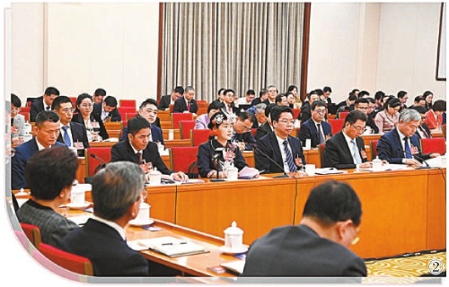 图①:全国人大代表曾旭晴(前排左一)发言。 图②:全国人大代表钟团玉(前排右四)发言。 图③:全国人大代表于宁杰(左)、全国人大代表蔡继明(右)热议最高检工作报告。 3月10日上午,十四届全国人大三次会议福建代表团举行全体会议,审议全国人大常委会工作报告、最高人民法院工作报告、最高人民检察院工作报告。 本报记者闫昭摄