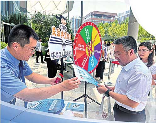 乡村同样是法治宣传的重要阵地。北京市怀柔区检察院创新“互动+沉浸+体验”普法模式,在乡村设置了“法律知识问答”“法律盲盒”“条文连连看”“法治大转盘”等趣味活动。一位参与活动的村民告诉记者:“通过今天的活动,我才知道民法典就在我们身边,它和我们的生活息息相关。”