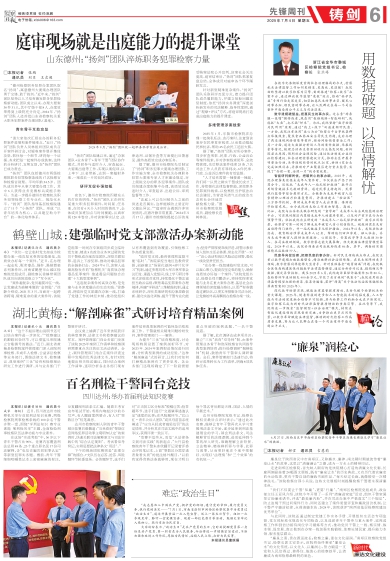 与此同时,该院还通过制定党建工作实务手册、开展组织生活会专项监督、党支部标准化规范化专项检查,以及选派青年干警参与重大案件、巡视巡察工作和到信访接待岗位学习锻炼等方式,推动党员干警上一线、察实情、练本领、促发展,真正做到在办案一线加强实践锻炼、体察社情民意、提升能力本领、服务基层群众。