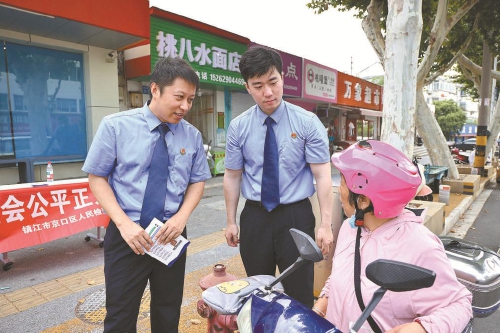 今年是《中华人民共和国社区矫正法》实施第五年。为提升社区矫正检察监督工作的社会认知度,7月11日,江苏省镇江市京口区检察院联合区司法局,共同前往辖区社区开展普法活动,并对社区矫正检察监督工作进行宣讲,针对居民提出的“发现社矫对象有违法行为怎么办”“如何看待社矫对象”等问题进行详细解答,提升群众对社区矫正工作的监督意识,共同建设平安社区、法治社区。 本报通讯员付志远 蔡慧摄