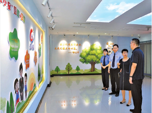 近日,河南省人大代表、多氟多新材料股份有限公司总经理李云峰(右一)应邀走进河南省焦作市中站区检察院调研未成年人检察工作,实地参观该院“星星未检办案区”、检察听证室等,对该院把本土红色资源融入未检工作,以红铸魂,以法护苗,创建“红小星”品牌的做法予以充分肯定。 本报记者张海燕 通讯员王玲摄