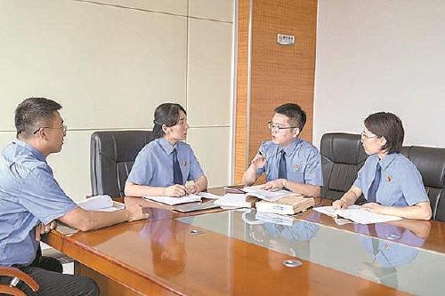 2020年9月,砀山县检察院刑检部门检察官与民事检察部门检察官讨论案情,共同审查案件中的法律关系。