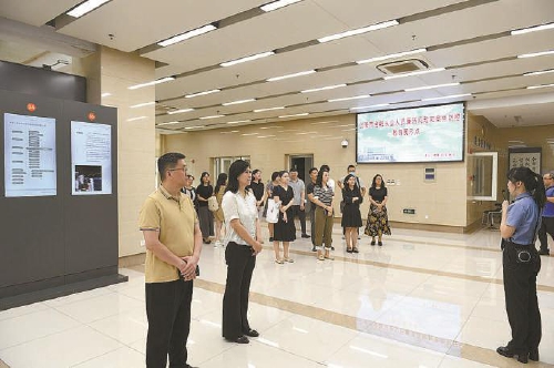 9月19日,徐汇区检察院在金融开放日活动中向参观人员介绍电影投资诈骗案,提示金融风险。