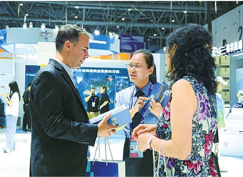 “您好,我想咨询知识产权的相关问题。”“好的,我们一一解答,这是我们的服务清单。”近日,在第四届全球数字贸易博览会上,浙江省杭州市检察机关的检察官作为驻点人员,服务保障数贸会。图为检察官向外商详细介绍检察机关数字贸易服务清单,并通过“检察e站”小程序演示侵权投诉快速受理流程。 本报记者史隽 通讯员饶周轶摄