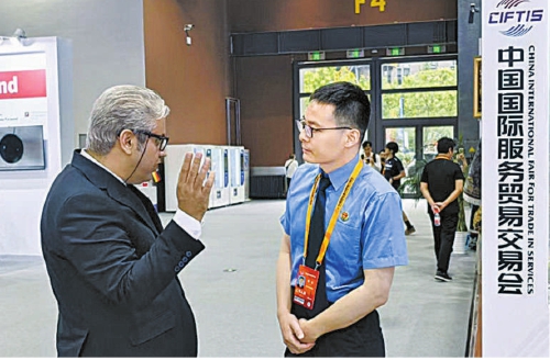 李欢一边介绍,一边将中英双语版的《白皮书》递给参展商。他用英语问道:“我们非常关注共建‘一带一路’国家的知识产权保护情况,你们是否遇到过商标被仿冒、专利被侵权等问题?”参展商回答:“我们目前还没有遇到商标侵权的情况,但我们一直很重视商标保护和企业利益保护。”随后,李欢告诉对方,北京市检察机关今年在服贸会上首次设立了涉外法律咨询台,免费为所有参展外商提供专业法律咨询。