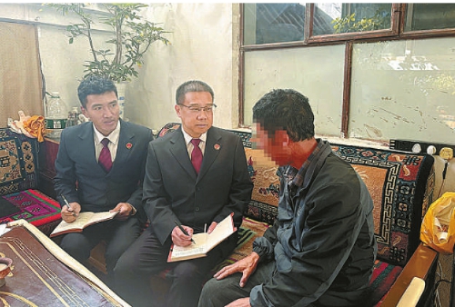 今年7月19日,王国栋(中)与西藏检察同仁一起到社区矫正对象家中实地走访了解情况。
