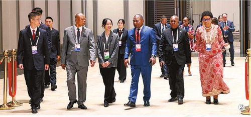 图⑥:会间,莫桑比克共和国与会代表与肯尼亚共和国代表进行交流。