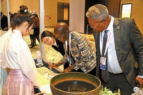 图⑫:大会结束后,与会嘉宾体验中国民俗文化。