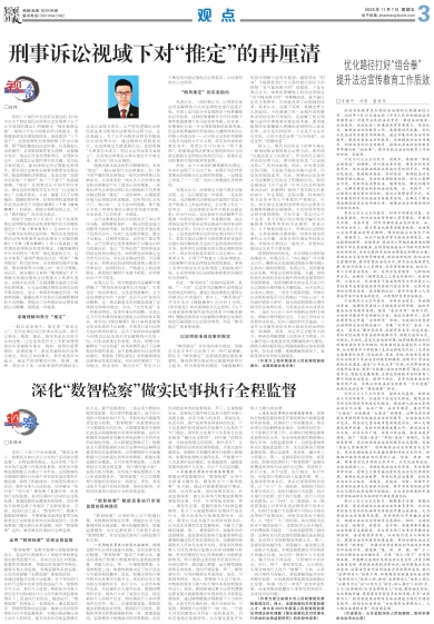 党的二十届三中全会强调,“强化当事人、检察机关和社会公众对执行活动的全程监督”。全程监督的提出,充分体现了党中央对执行监督工作的高度重视。民事执行检察监督制度正式确立十余年来,全国检察机关围绕民事执行办案中多发易发违法情形开展监督,取得了积极成效,对规范民事执行活动、维护当事人合法权益、切实解决“执行难”“执行乱”都发挥了重要作用。民事执行全程监督,是对民事执行活动的全过程监督,强调监督的全覆盖和系统性,对民事执行检察监督工作提出了全新的要求。当前,我国社会已进入“数智时代”,搭建大数据法律模型、开展智能化法律监督等实践探索也正在检察系统如火如荼地进行,民事检察部门理应抓住改革浪潮,深化“数智检察”运用,做实做优民事执行全程监督。