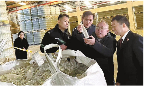 2025年1月9日,办案检察官与办案民警来到被害企业仓库实地走访,了解被盗玻璃瓶规格、种类及回收流程。